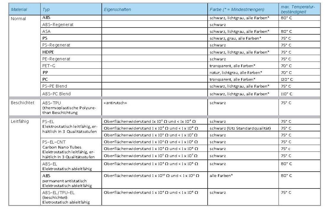 Wir verarbeiten alle für das Thermoformen geeigneten Thermoplaste wie: